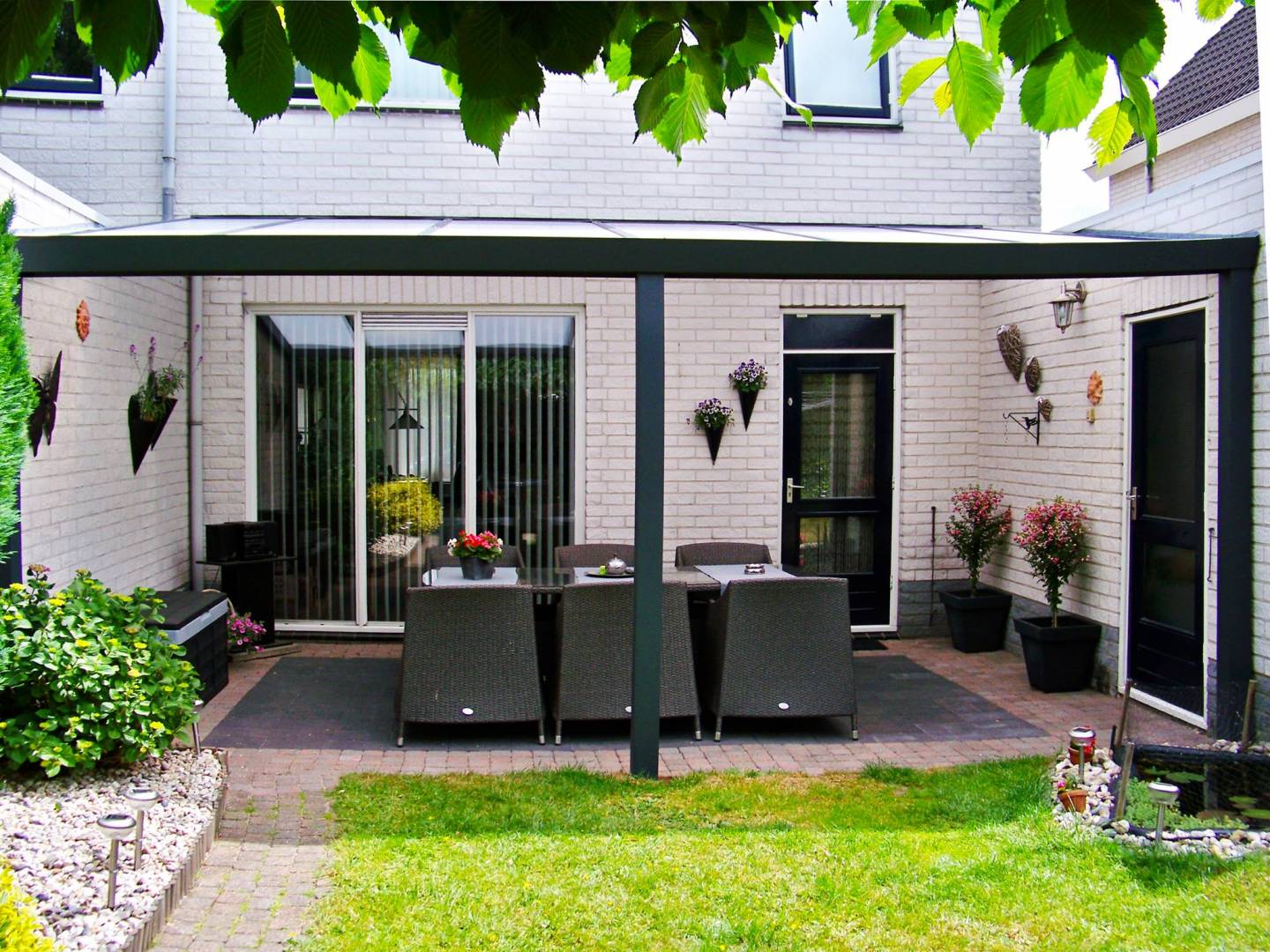Optionale Senkrechtstoren an der Frontseite sind Sicht- und Sonnenschutz.