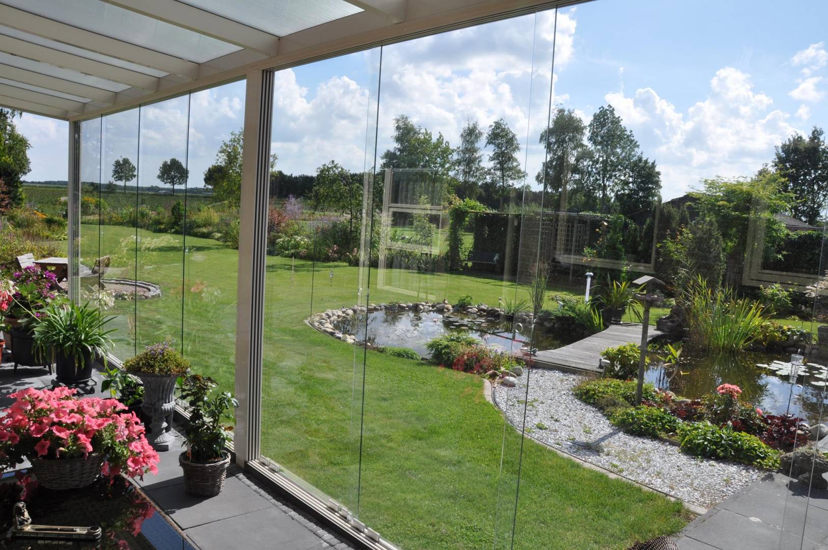 Mit den neuen Seitenwand-Lösungen von Lewens werden die MURANO-Glasdächer zum bestens geschützten Refugium.